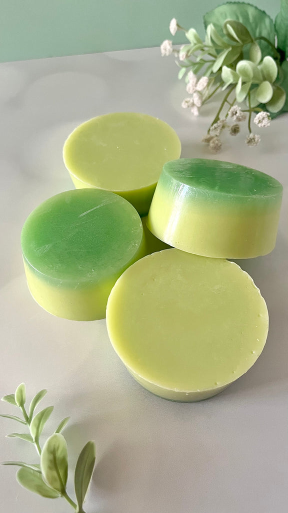 Indulge in the bubbly bliss of our Pear Prosecco Shea and Cocoa Butter soap round.