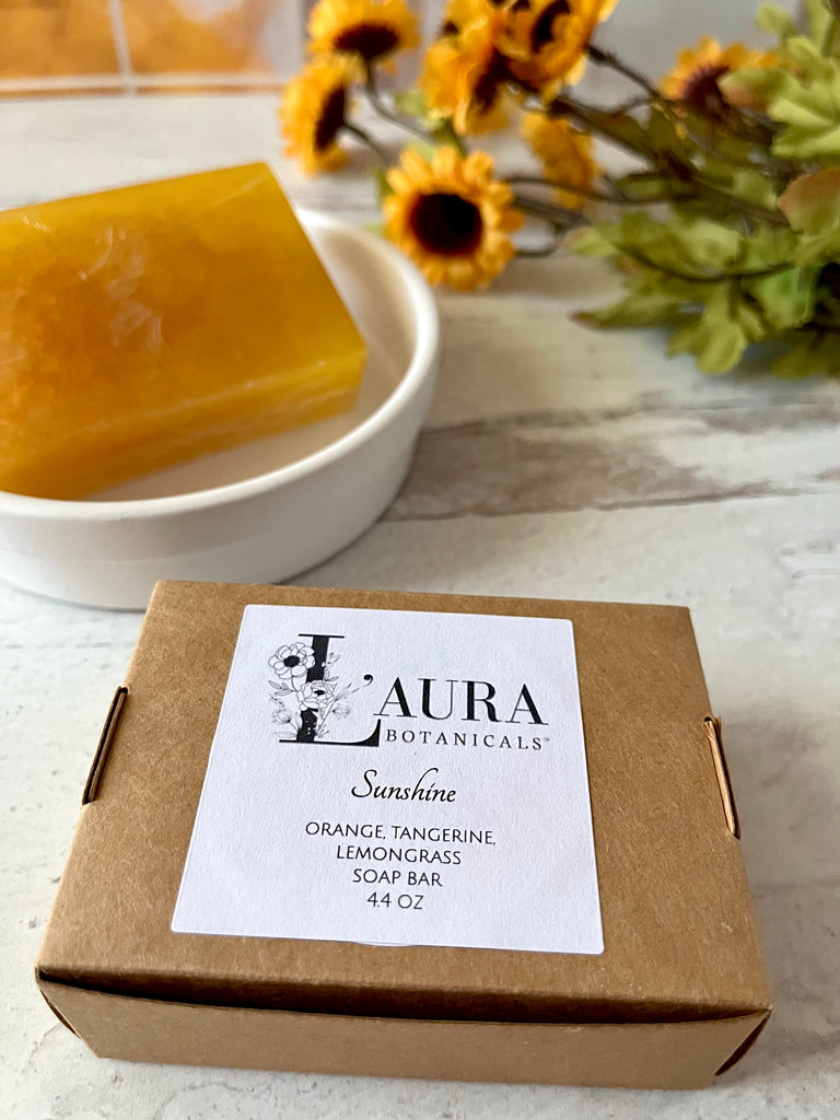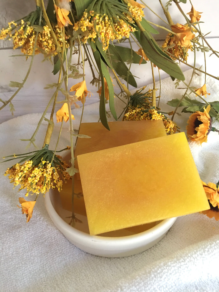 We hand pour our soaps with a natural glycerin base and then infuse them with our Sunshine oil blend.