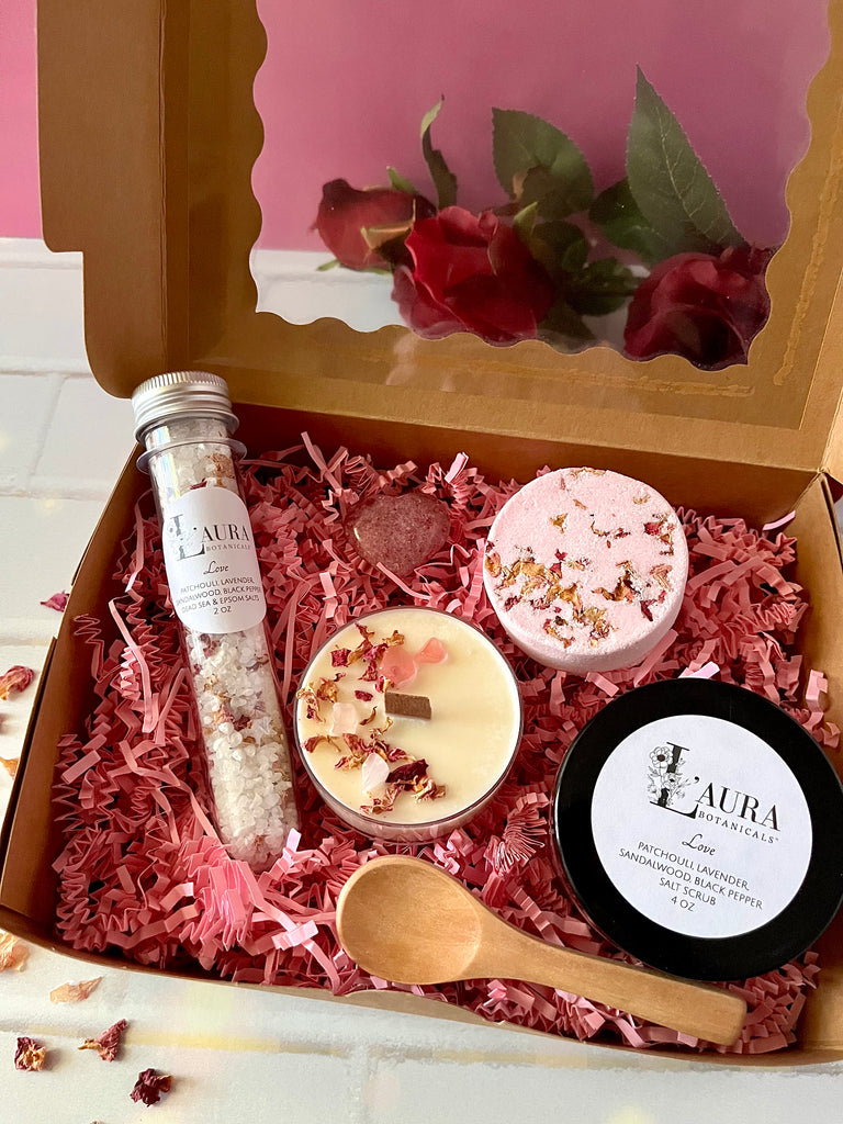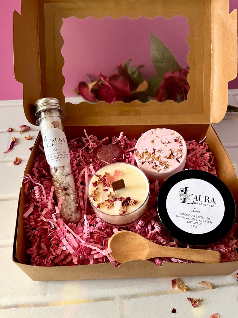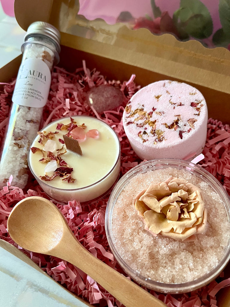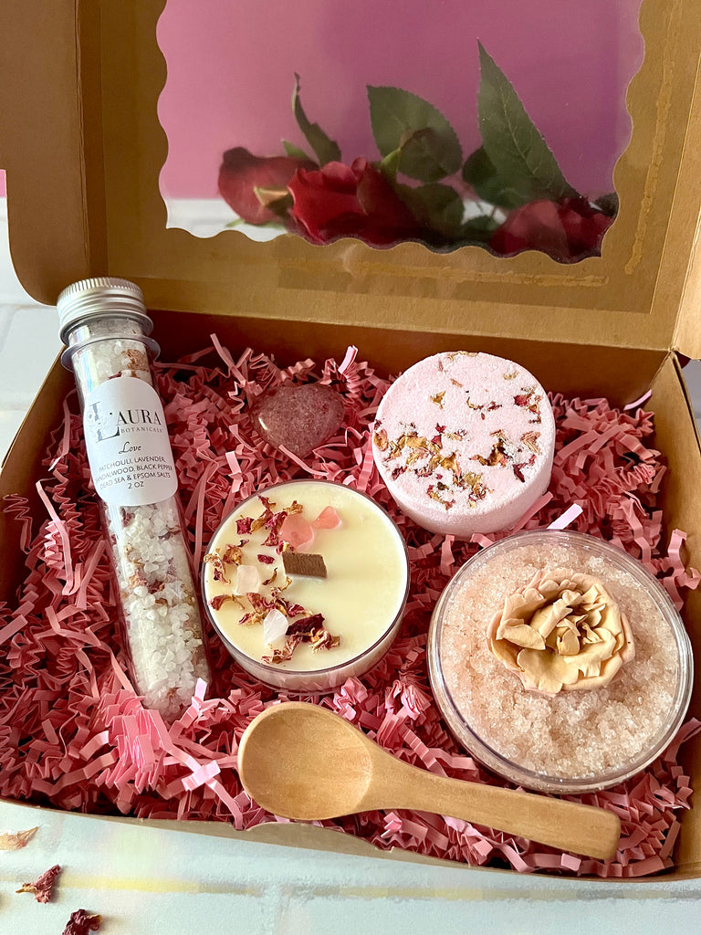 Show yourself love or send your love with a romantic, floral aromatherapy spa gift box!